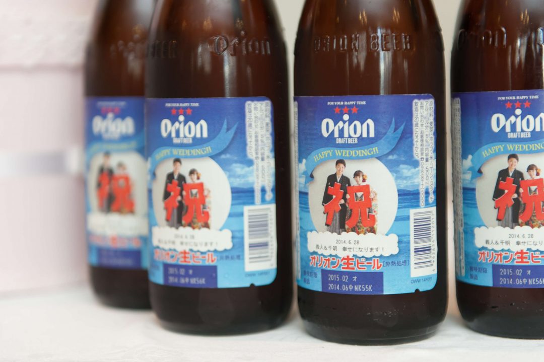 新郎新婦オリジナルのオリオン「祝」ビール。