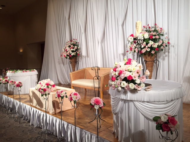 挙式の際に、バージンロードの両サイドを彩るお花として並べて、