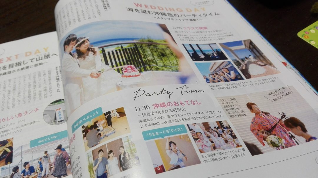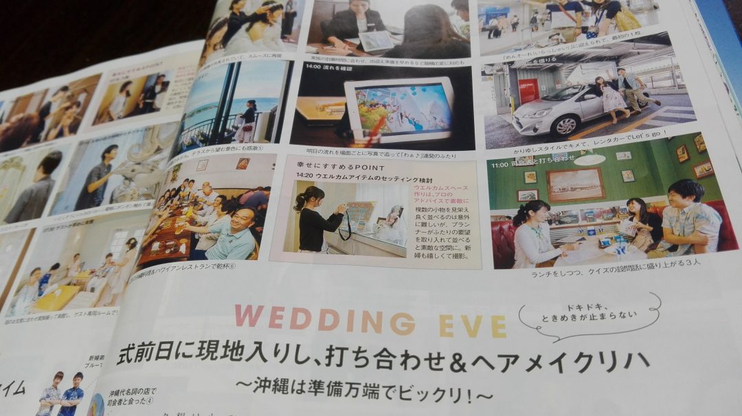 記事では、関東にお住まいのカップル様が、結婚式を挙げたいと思った頃から、東京のサロンでの準備の様子⇒沖縄での挙式&パーティーまで、全11ページで大特集しています。