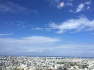 ホテル最上階から、首里の大空に祝福されて